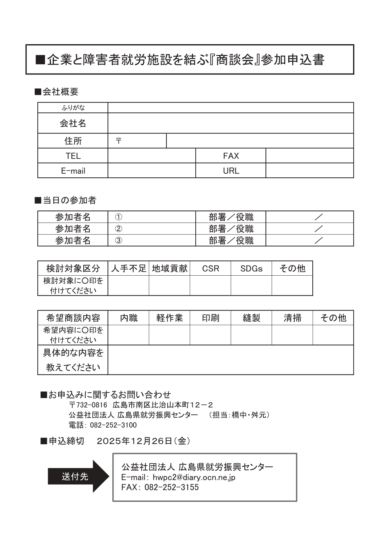 企業と障害者就労施設を結ぶ「商談会」出展企業募集