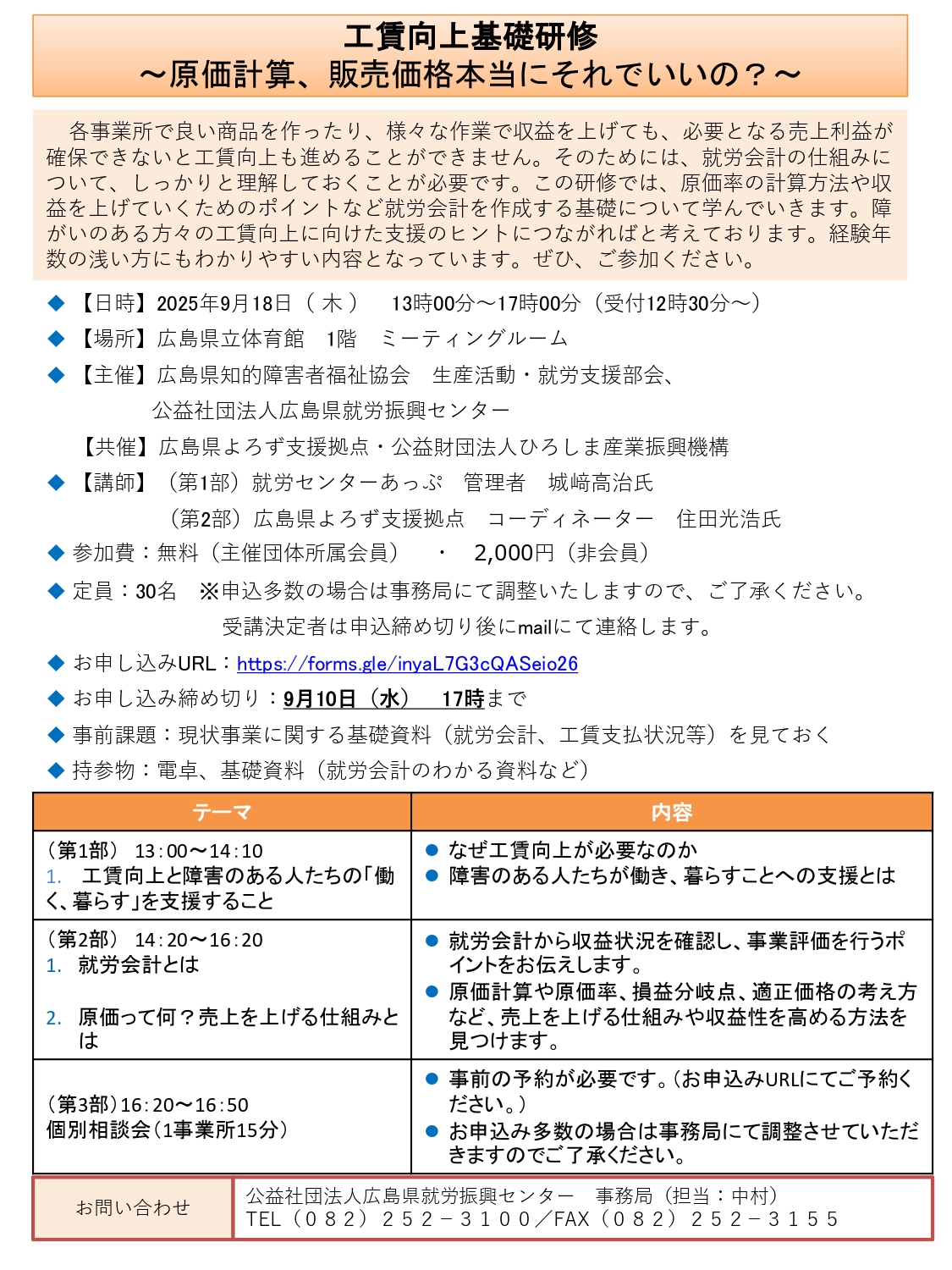 工賃向上基礎研修~原価計算、販売価格本当にそれでいいの?~