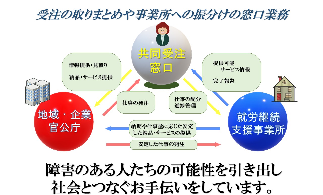 広島県では、平成24年度(2012年度)から広島県就労振興センターが受託し、共同受注窓口を運営しています。